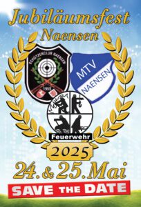 Am 24. und 25.05.2025 feiert die Freiwillige Feuerwehr Naensen ihr 150- jähriges Bestehen. Zusammen mit dem MTV Naensen, der auf 120 Jahre Vereinsleben und dem Schützenclub Naensen, der auf 70 Jahre Zusammenhalt zurückblicken können.