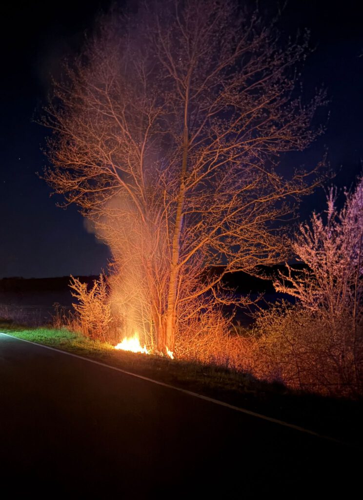 Am Dienstagabend wurden die Feuerwehren Naensen und Brunsen mit dem Stichwort: „Einsatz mittel: Freiflächenbrand bis 50 m²“ auf die Abweigung von B3 auf die K 661 bei Mühlenbeck alarmiert.
