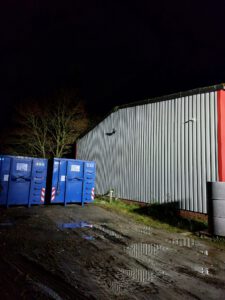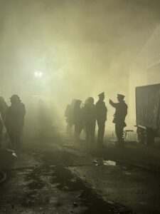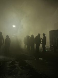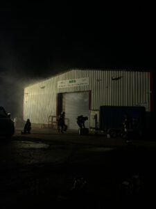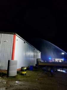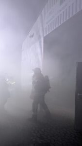 Im Übungsszenario galten zwei Personen als vermisst in der Lagerhalle. Zwei weitere befanden sich außerhalb, wobei eine unter einem Container eingeklemmt war. Die Feuerwehrkräfte mussten unter Atemschutz vorgehen, um die „Vermissten“ zu retten und den simulierten Brand zu bekämpfen.