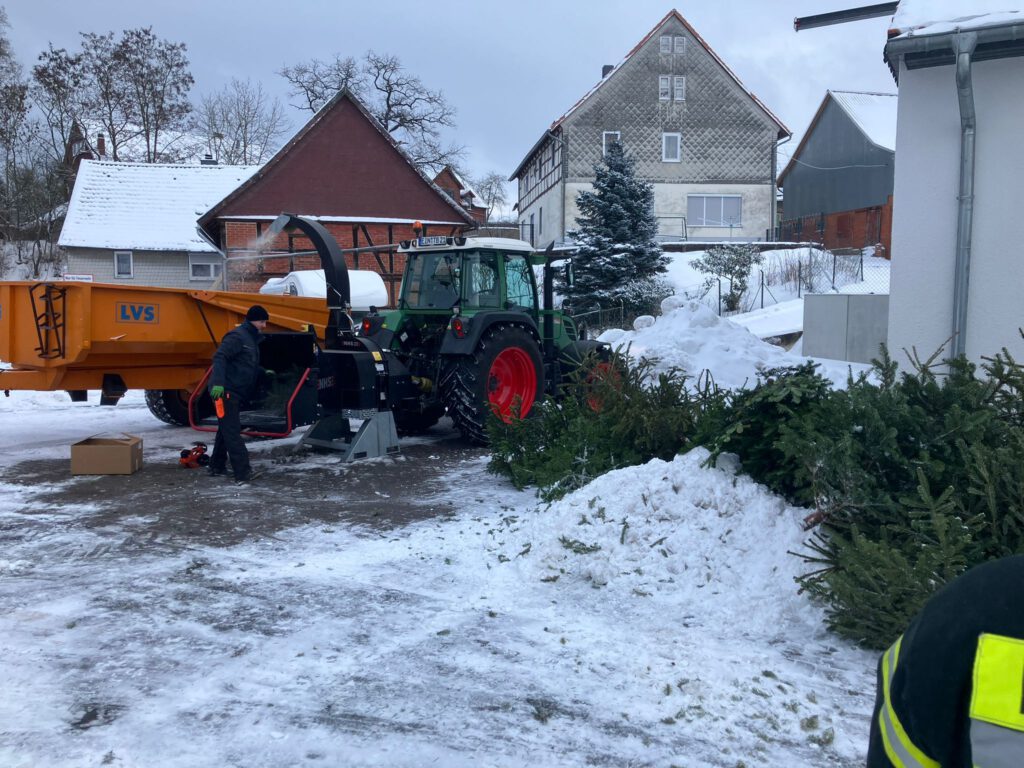 Im Anschluss an das Sammeln wurden die Weihnachtsbäume wieder gehäckselt.