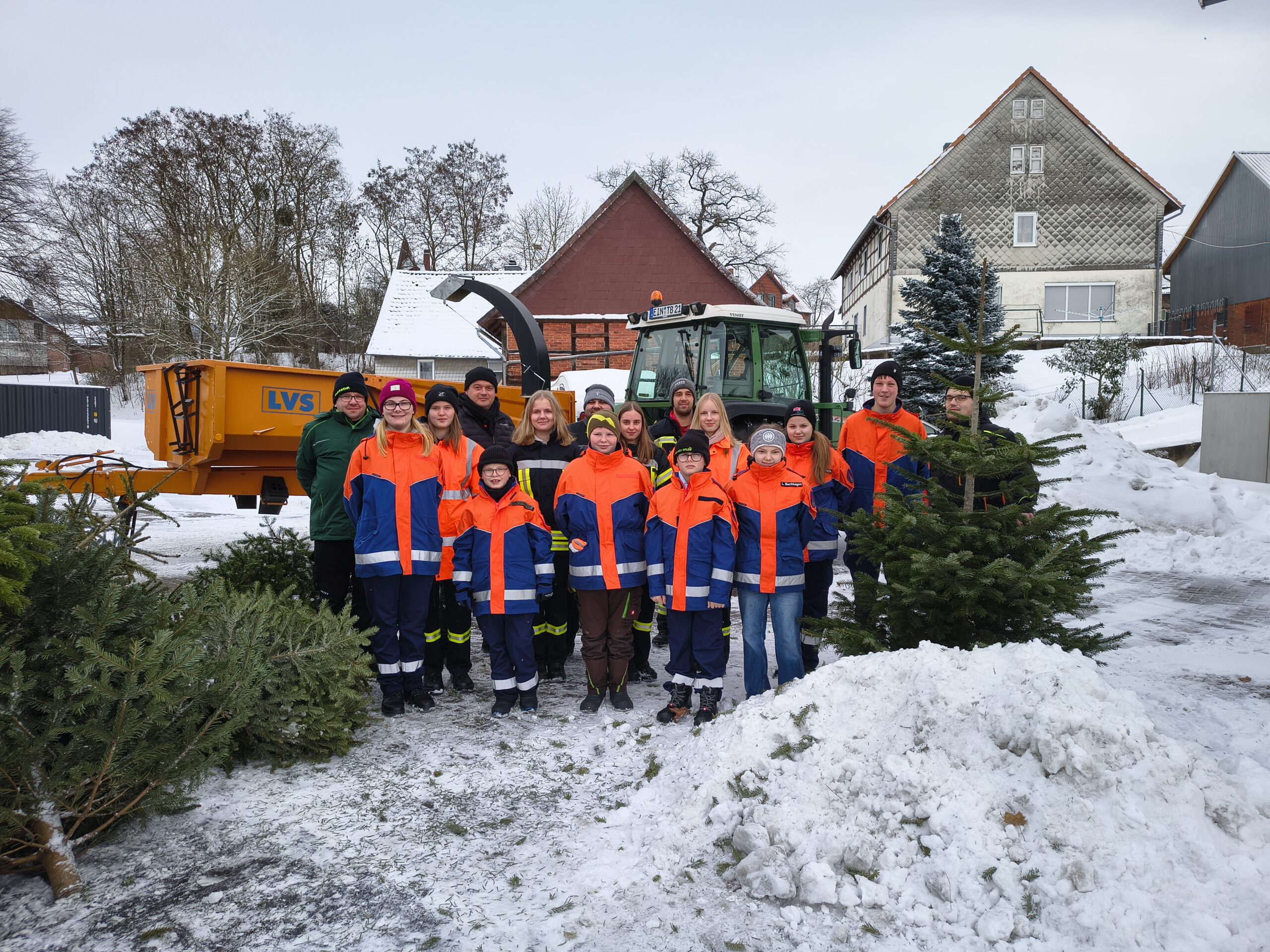 In Naensen sammelten die Jugendlichen mit Unterstützung die vorab angemeldeten Tannenbäume ein und verbrachten diese zum Feuerwehrhaus.
