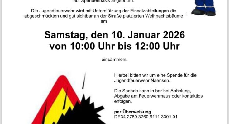 Die Jugendfeuerwehr wird mit Unterstützung der Einsatzabteilungen die abgeschmückten und gut sichtbar an der Straße platzierten Weihnachtsbäume am